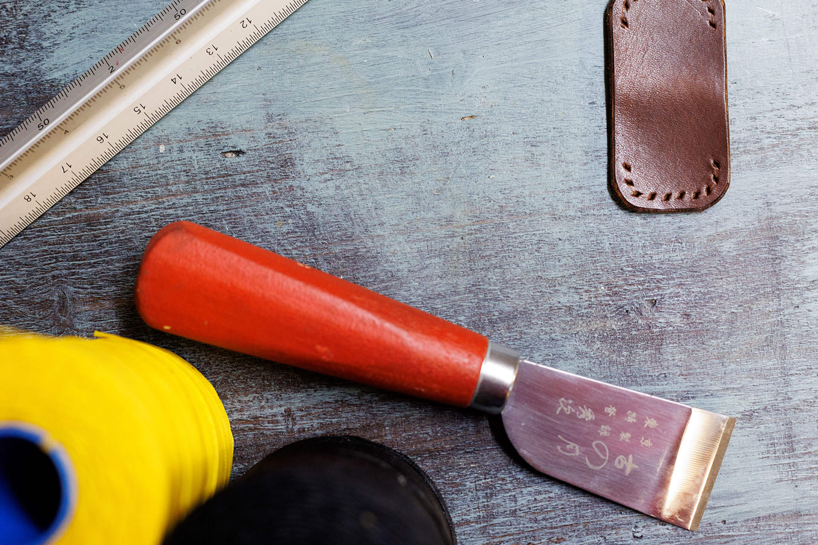 De tous nos artisans, c’est celui qui appréhende son métier de maroquinier via un processus créatif extrêmement rigoureux : d’abord, il dessine sur papier, puis il utilise des logiciels de dessin technique pour réaliser des maquettes en carton, pour enfin faire « plusieurs » essais (comprenez nombreux !) sur la matière, ses prototypes d’excellente qualité ne trouvant ses faveurs que lorsqu’ils atteignent la perfection.