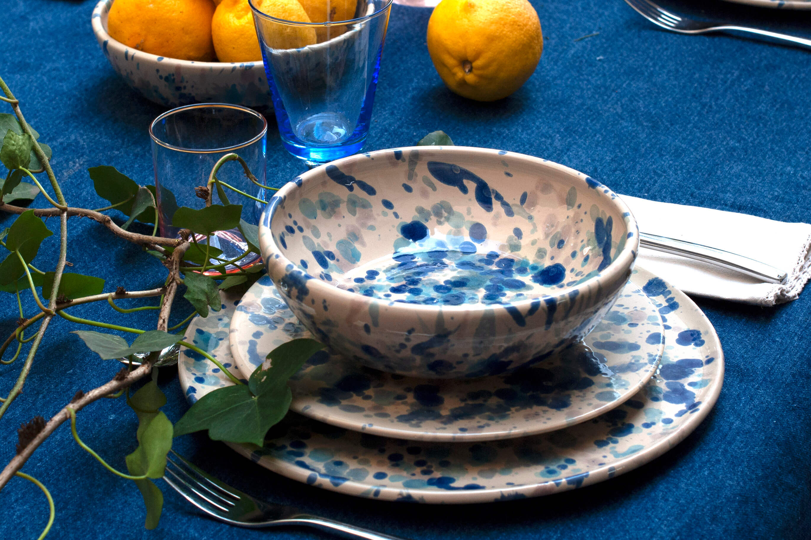 Vous pouvez créer de jolies tables avec la collection Schizzo ou en la mixant avec une vaisselle de couleur unie, pour créer un contraste surprenant et réinterpréter vos tables à chaque occasion.