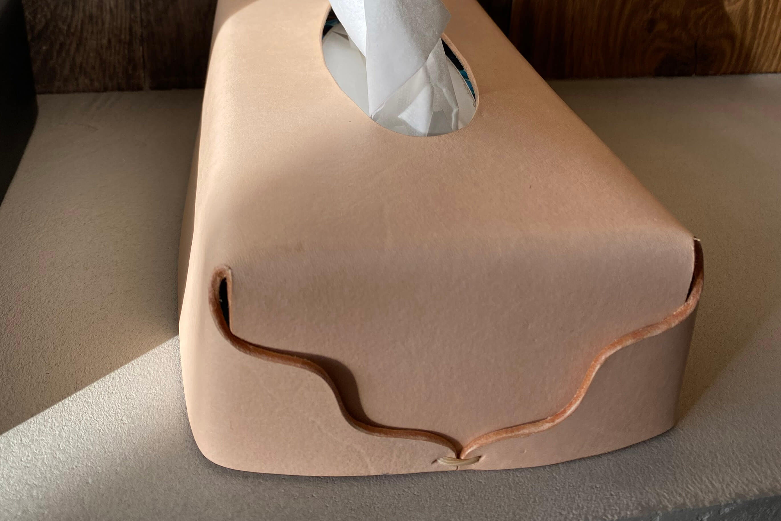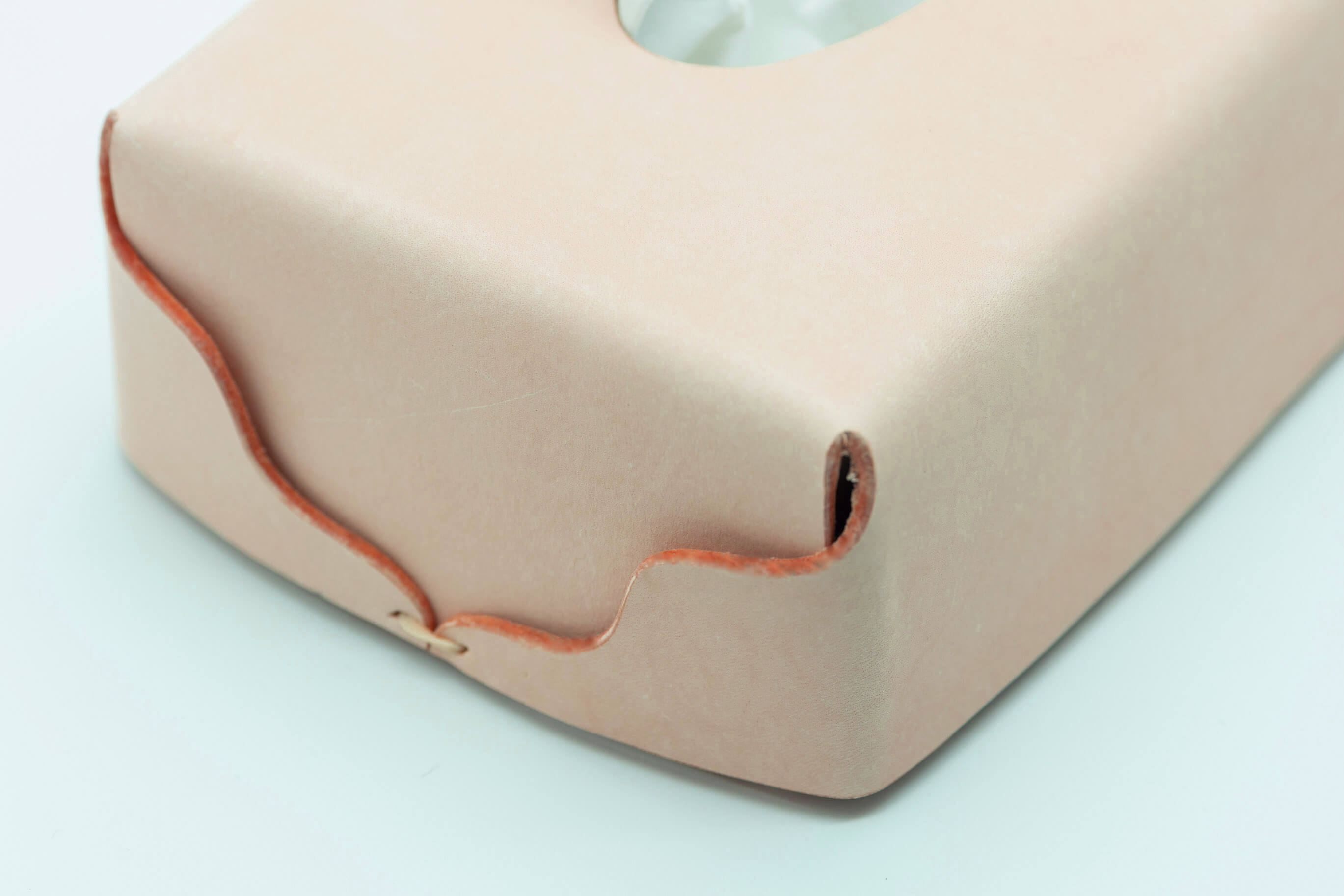 Le cuir végétal de premier choix utilisé a été sélectionné minutieusement dans l’une des tanneries les plus éco-responsables du Latium. D’une épaisseur de 2,2 mm, il est gravé à l’aide d’un poinçon pour délimiter les bords qui sont traités à la cire d’abeille.