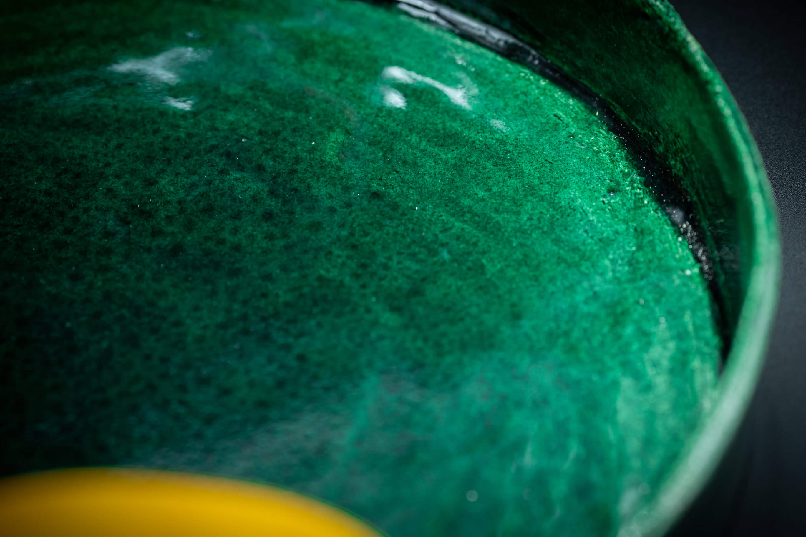 Finition et technique de la céramique : émail brillant vert impérial, cuisson avec phase de réduction profonde.