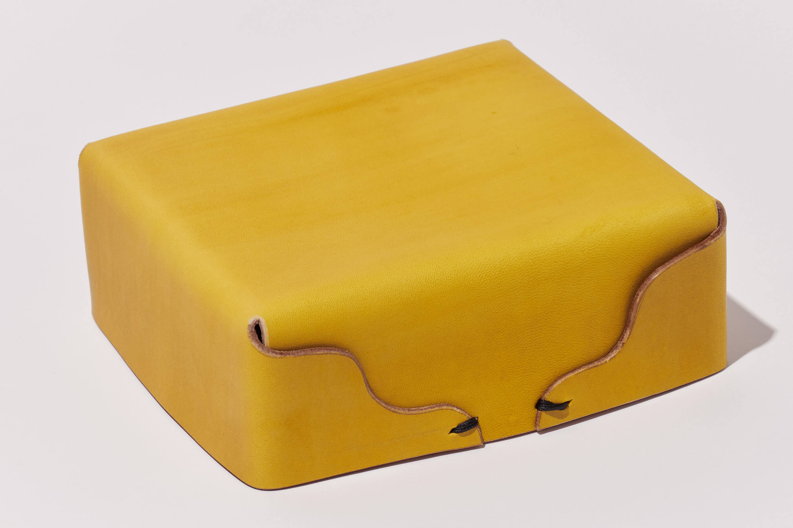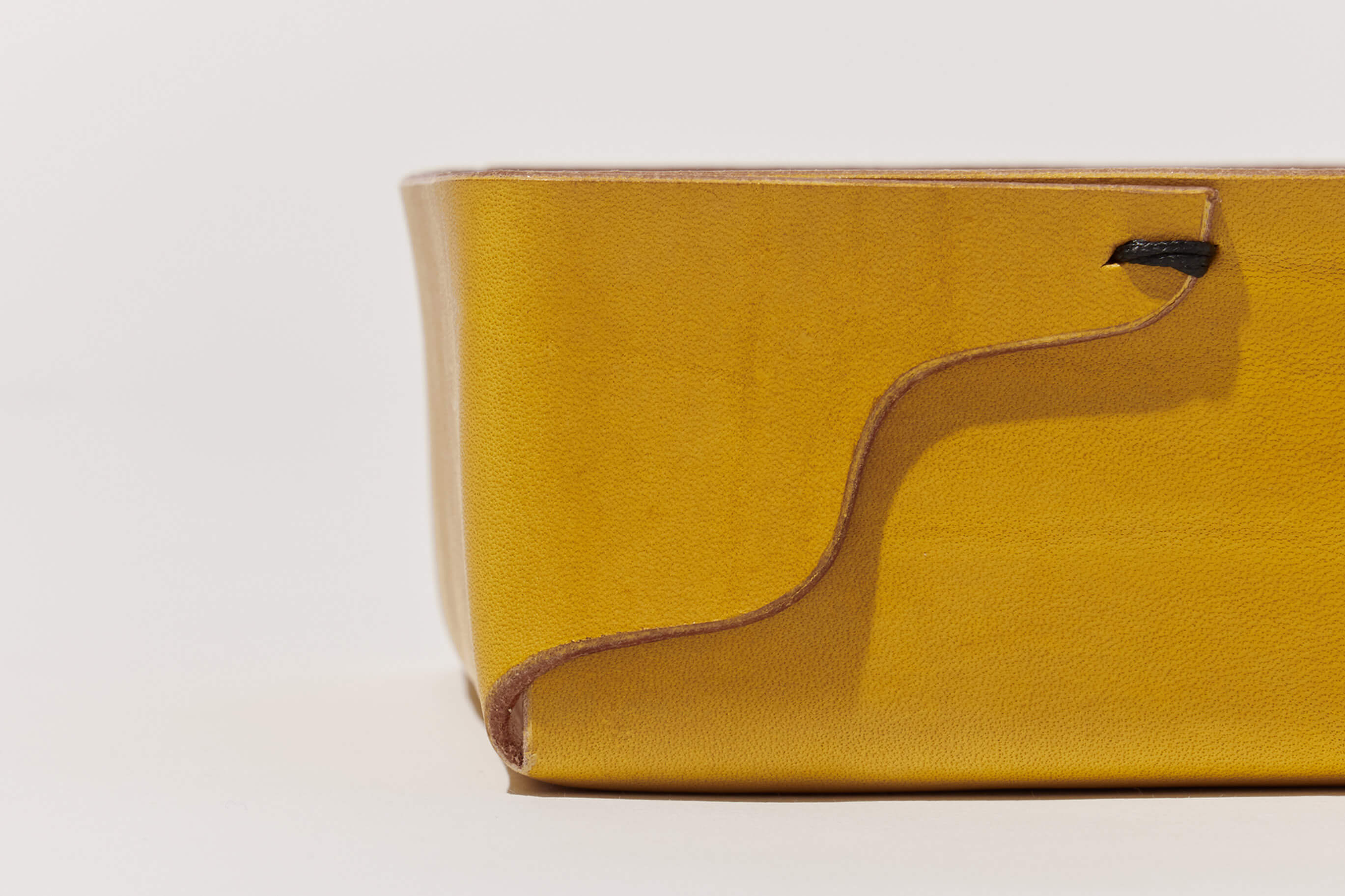 Le jaune intense de Curva Gialla est obtenu grâce à une teinture manuelle au tamponnage. Celle-ci permet de restituer une couleur non homogène, à l'aspect très authentique et noble, car elle conserve les différences de teintes du cuir naturel.
