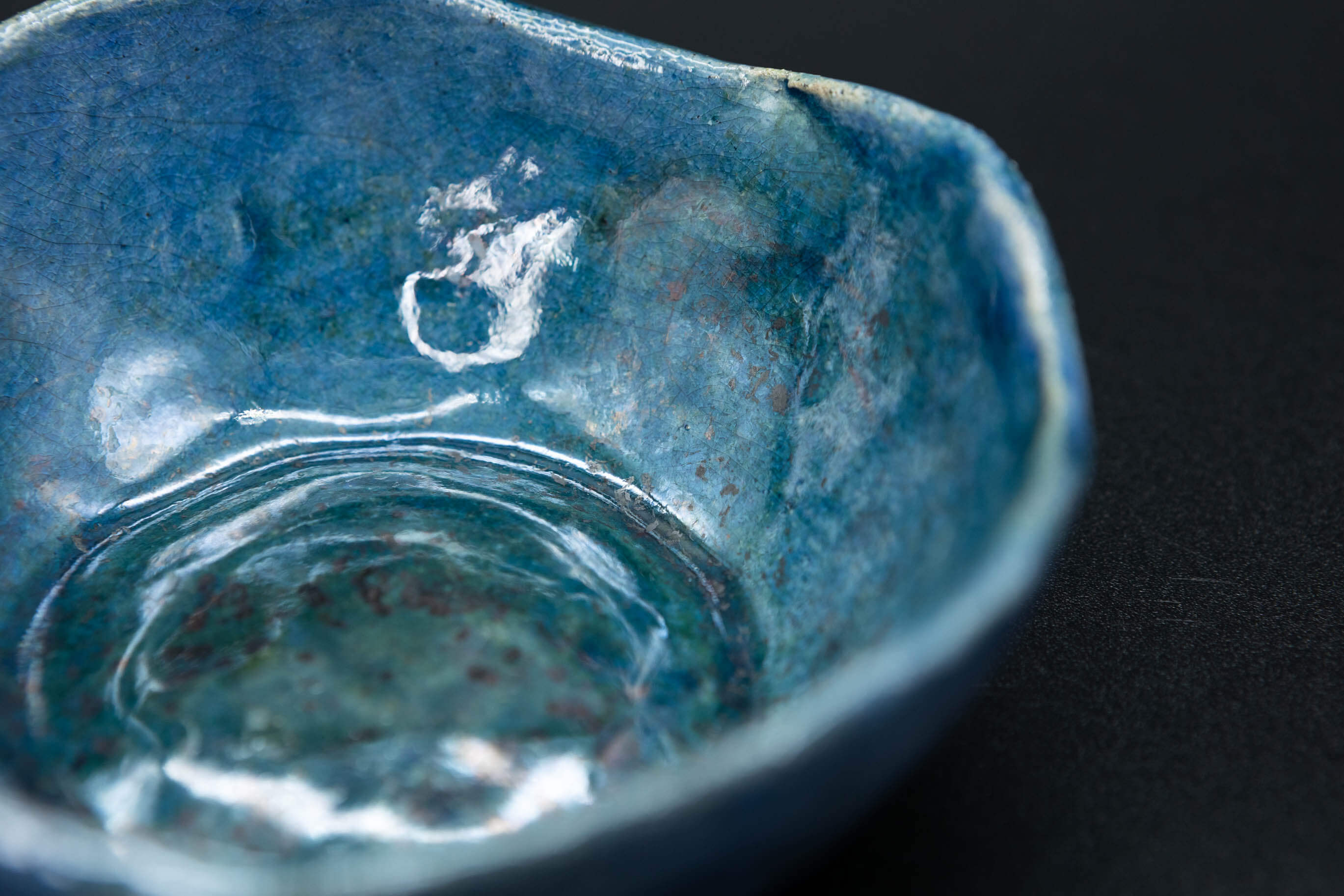 Finition et technique : émail turquoise brillant, oxyde de cuivre et cuisson avec phase de réduction.