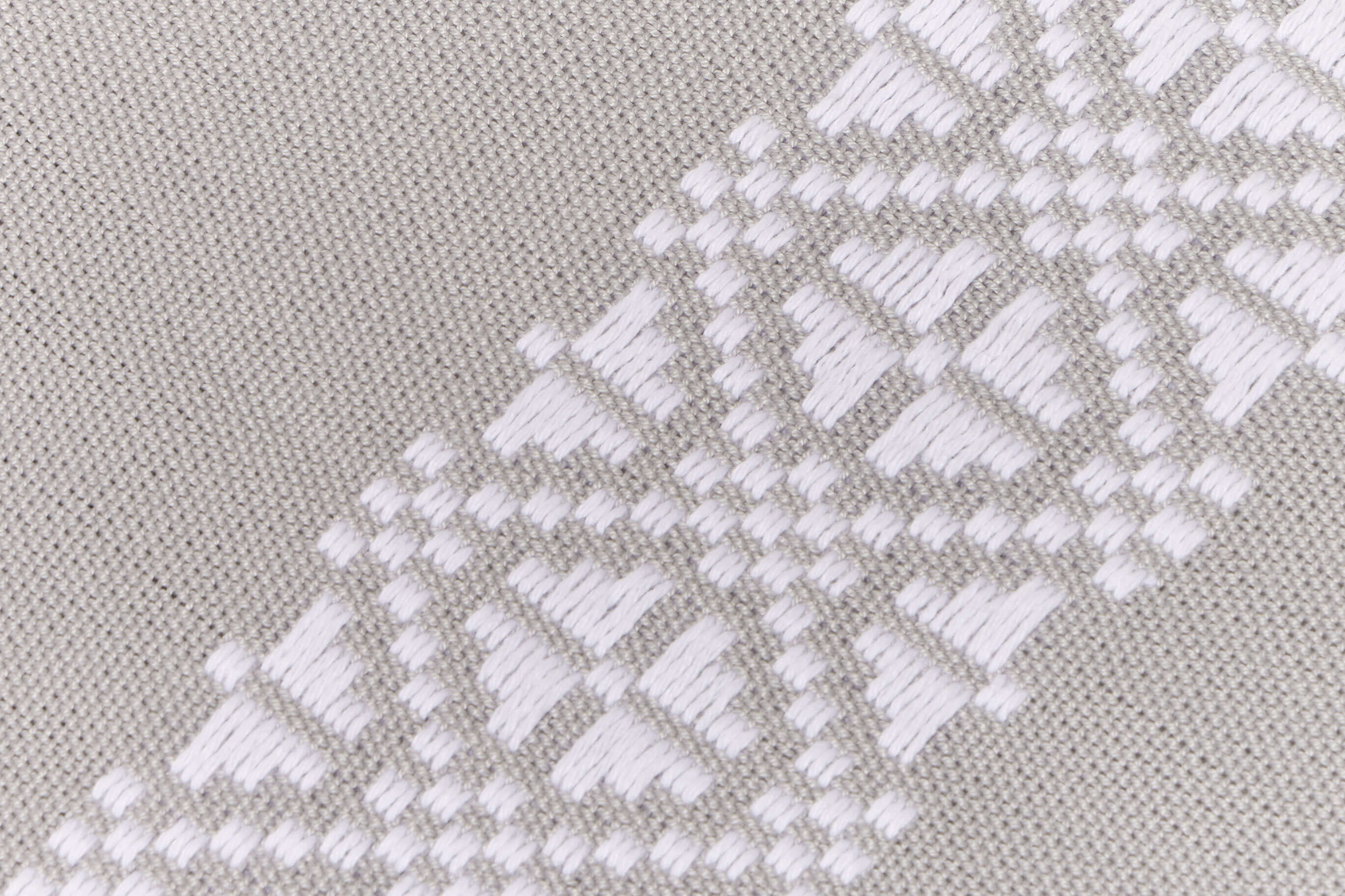Le dessin souhaité est d'abord réalisé sur papier quadrillé. Il est ensuite tissé avec le métier que notre artisan a lui-même construit, entièrement à la main, en comptant les fils, d'où le besoin de quadrillage. Chaque fil est soulevé pour passer la trame de couleur.
