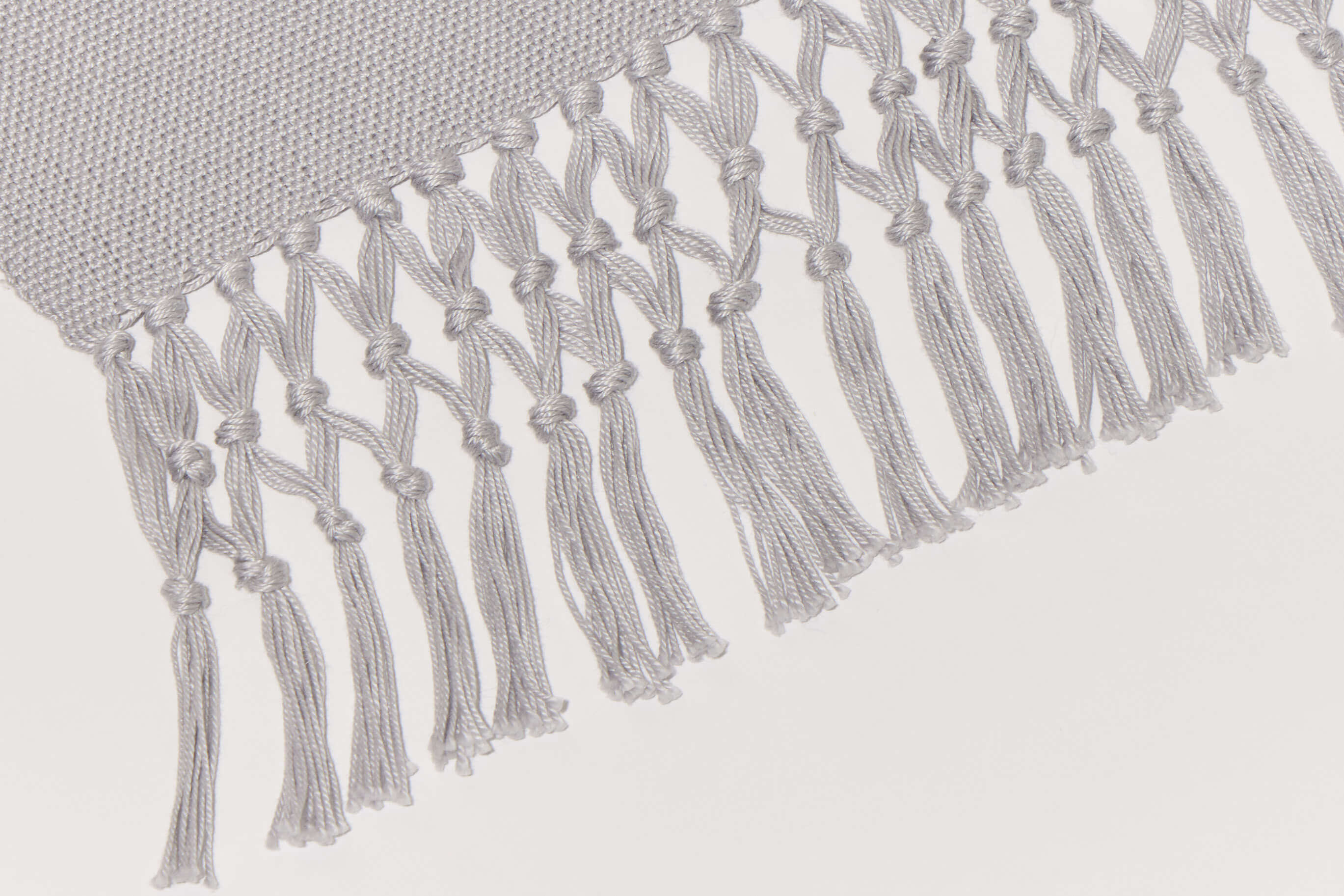 A disposer à même votre table ou sur une nappe, la couleur gris tendre réhausse les dessins géométriques blancs, et s'adaptera à merveille à une vaisselle unie blanche ou de couleur.