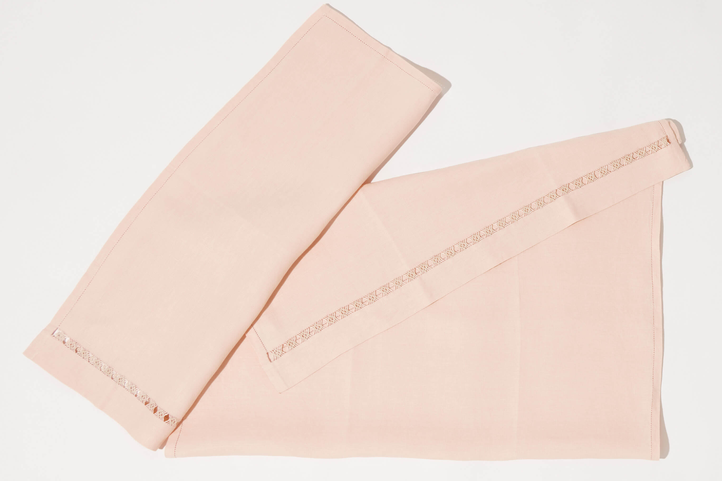 Ce set de 2 serviettes de bain en lin apportera élégance et raffinement à votre salle de bains grâce à ses broderies et à la douceur de sa couleur eau de rose.