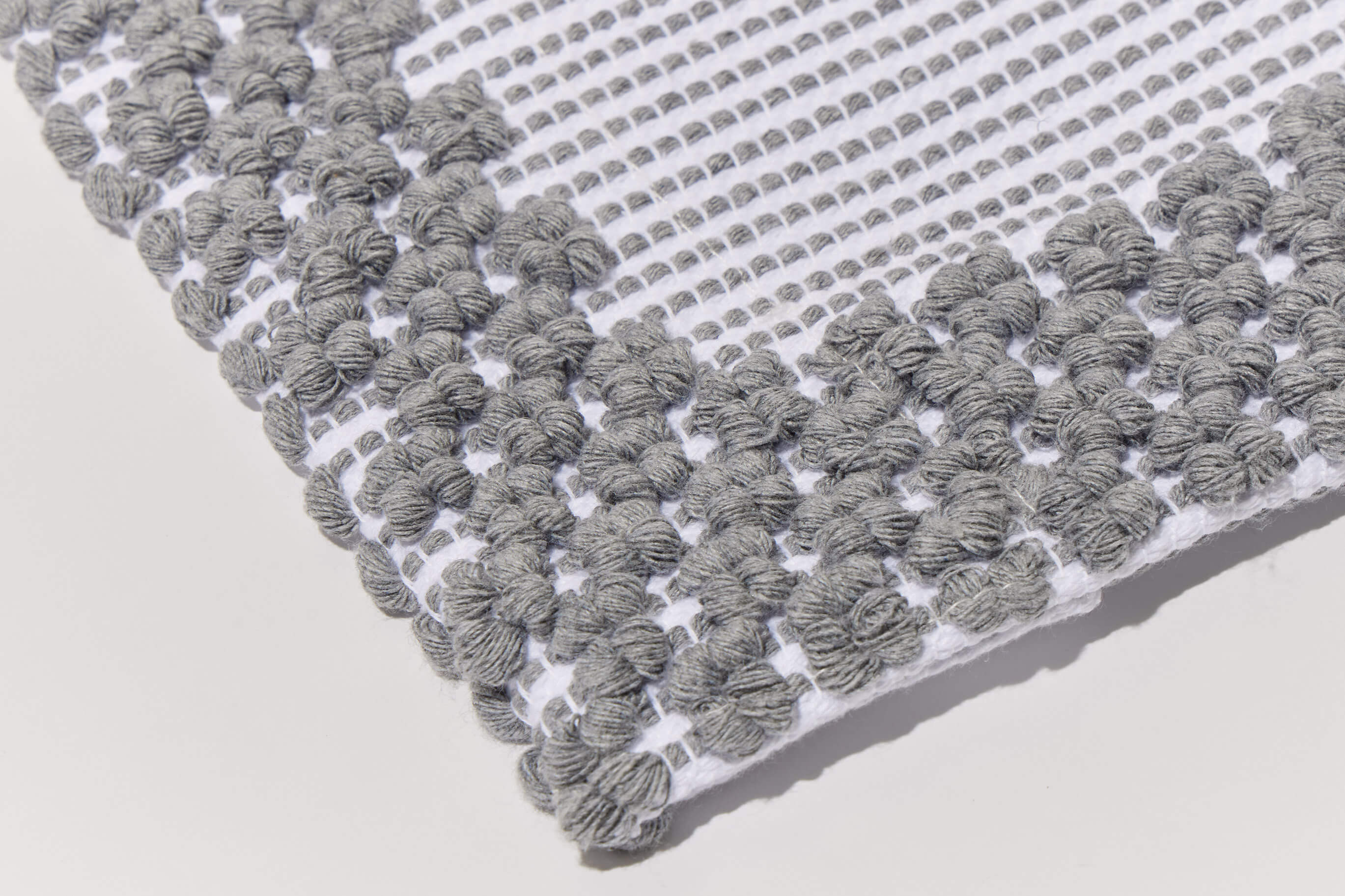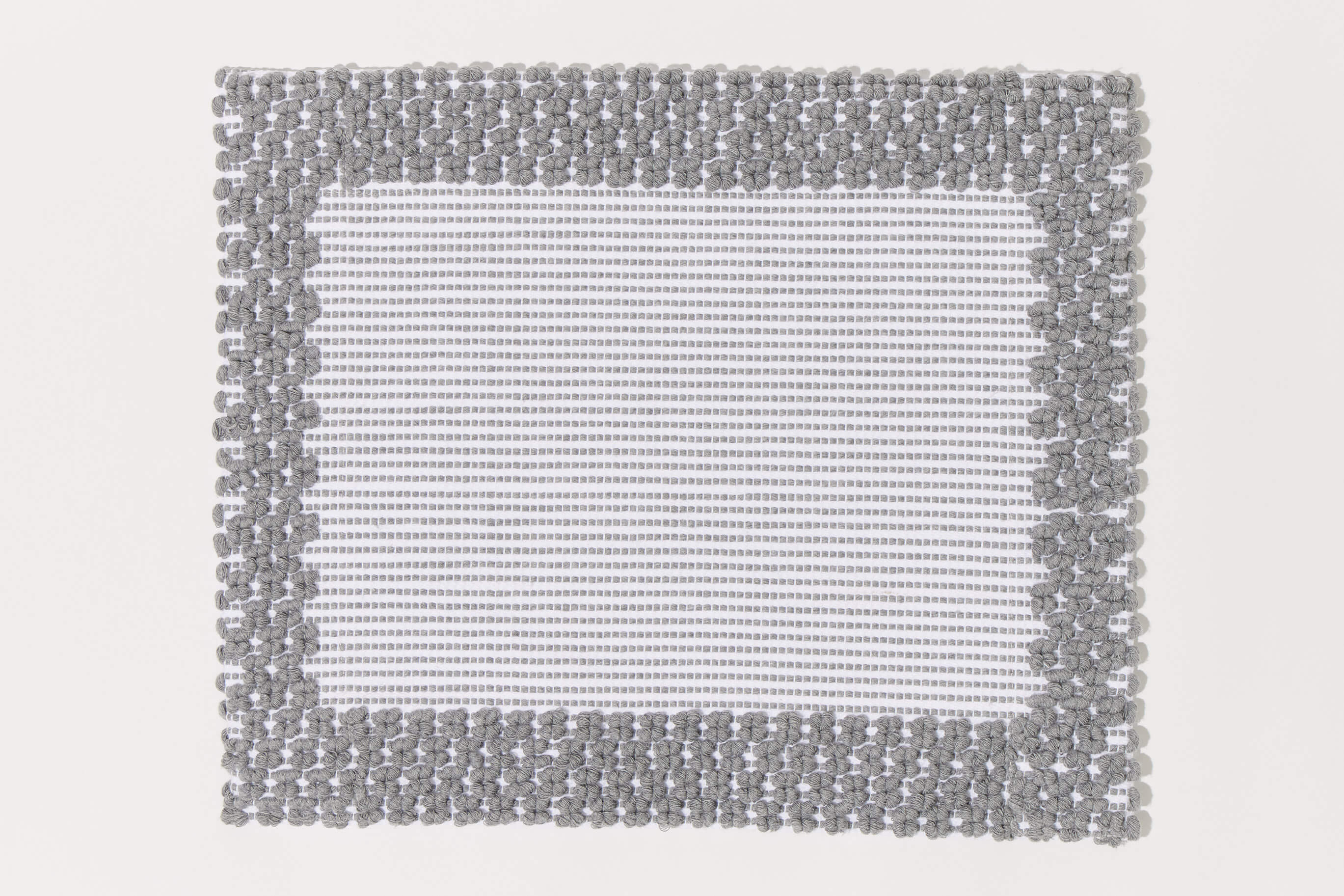 Pibiones est un duo de sets de table élaborés à la main par Marcella Sanna, grâce à la technique de tissage sarde "a pibiones", qui consiste à produire des motifs en relief, en forme de grain de raisin. C'est avec le "semi pieno" (travail semi plein) que la corniche de Pibiones Grigio est mise en valeur, sur le fond bicolore tissé. Toute la beauté de cette technique ancestrale est ainsi révélée.